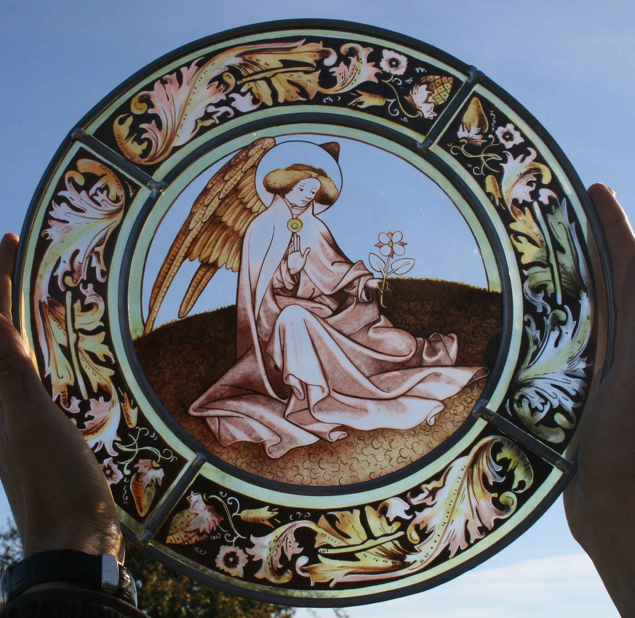 Ici, des projets en verres plats (soufflés ou industrialisés, potentiellement colorés, texturés...), sertis au plomb ; et/ou peinture sur verre (grisaille, émail) ; d’après les techniques traditionnelles et ancestrales du vitrail.