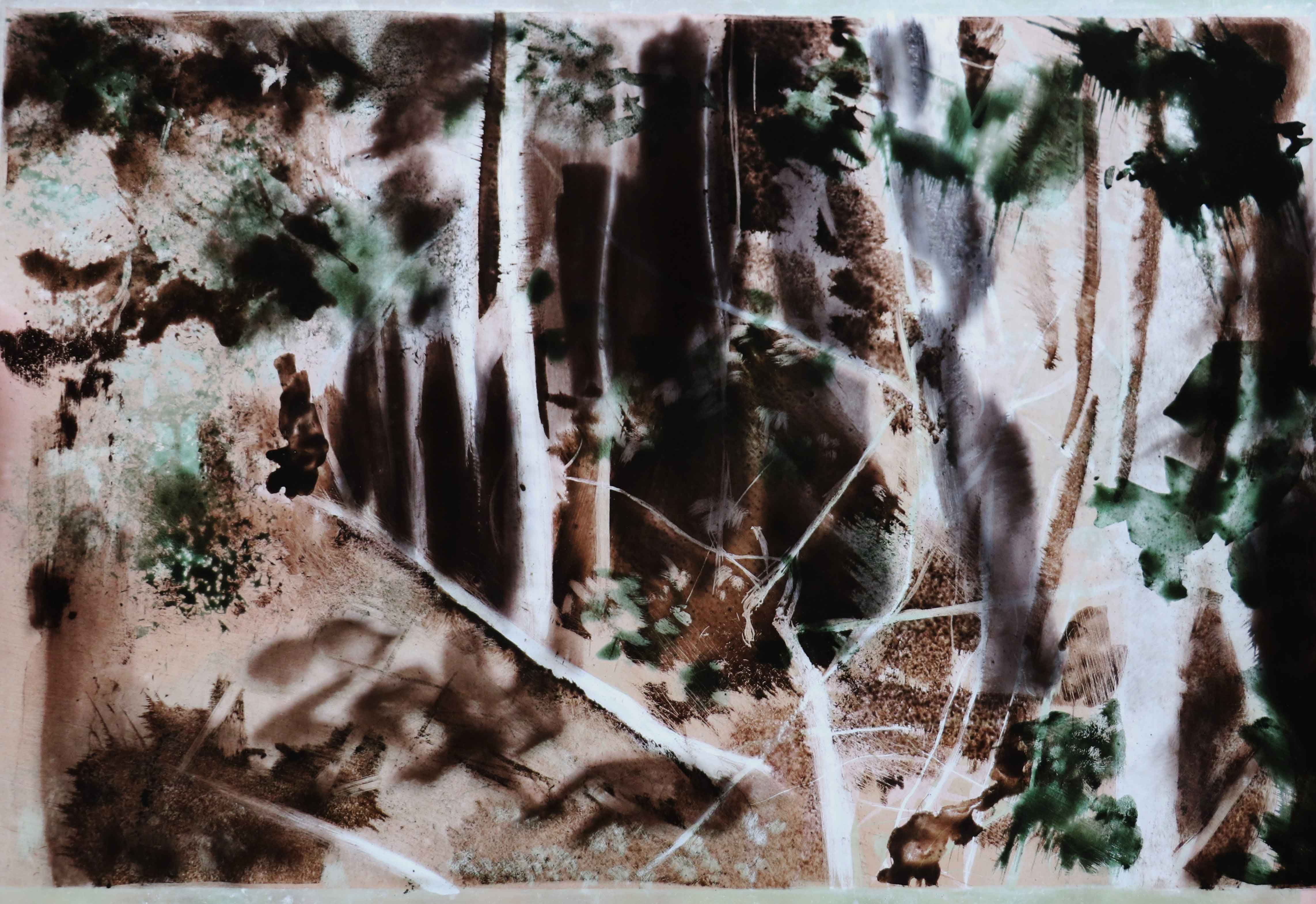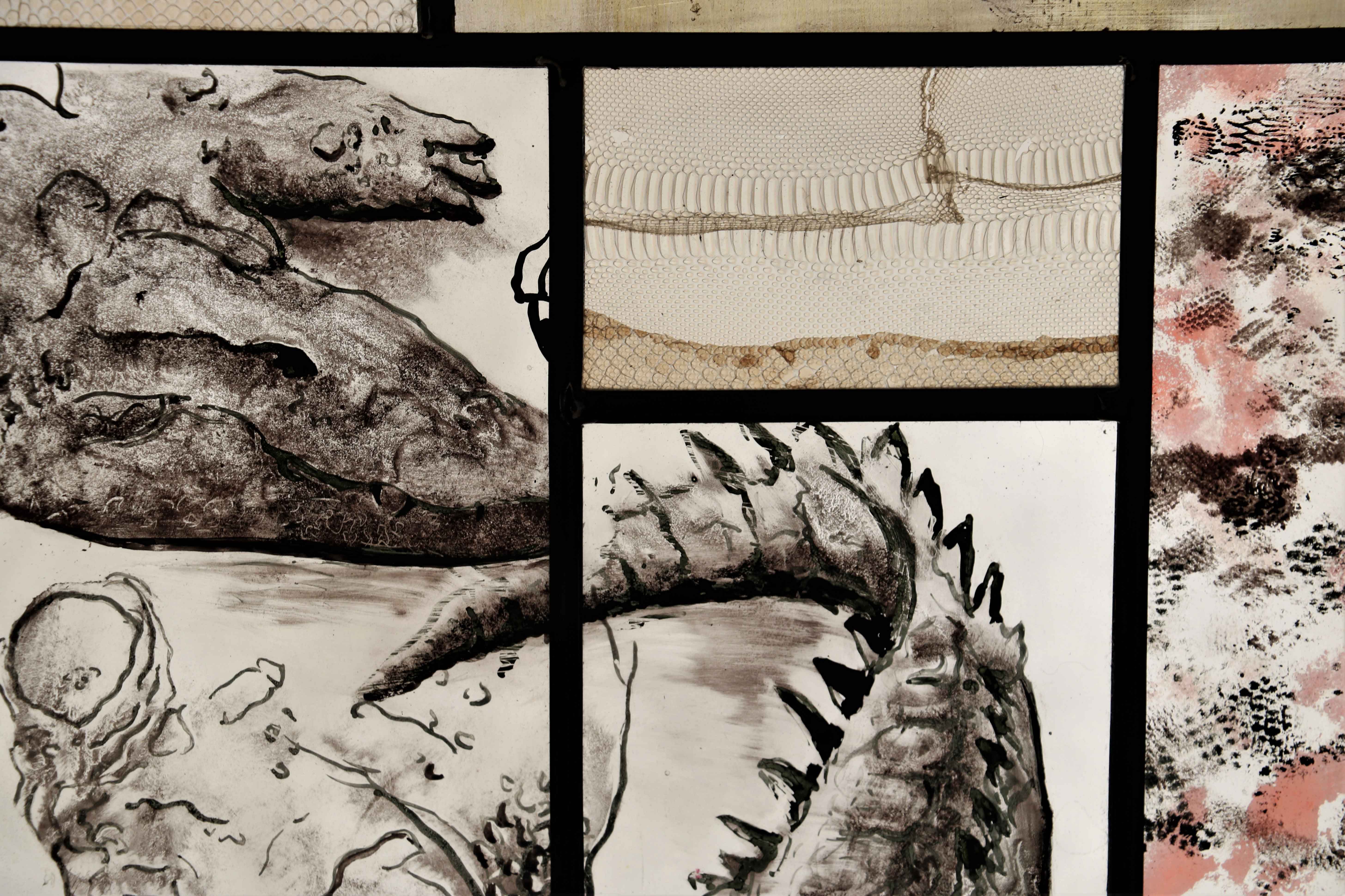 Empreintes d'écailles, verres peints, mues de serpent, 2017.